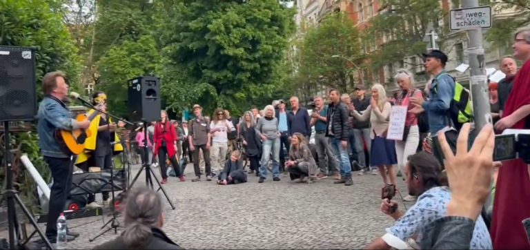 Der Schauspieler, Sprecher und Liedermacher Karsten Troyke hat am Montag, den 23.05.2022, die Menschen vor der Gethsemanekirche mit seiner Stimme in Staunen und Entzücken …